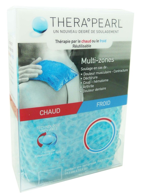 La technologie THERA°PEARL soulage par le chaud ou le froid diverses douleurs sur l’ensemble du corps (entorses, hématomes, douleurs musculaires articulaires,…) naturellement par son système avec des petites perles de gel. THERA°PEARL qui est réutilisable soulage lors de foulures, entorses, syndrome du canal carpien, arthrite, tendinite... Souple, elle épouse la forme du corps. Sa technologie novatrice Pearl TM permet de garder la température constante pendant 20 minutes pour un soulagement durable. La compresse peut être : - chauffée au micro-ondes pour une action chaude en cas de douleur musculaire, contracture, arthrite. - frais et froid au réfrigérateur ou au congélateur pour une action froide en cas d’hématomes, déchirure, coup, douleur dentaire