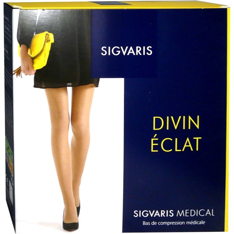 Bas de compression médicale Divin Eclat de SIGVARIS discount, des bas élégants et raffinés dans votre parapharmacie en ligne à prix discount, pour soulager les sensations de jambes lourdes et fatiguées, les inconforts pendant la grossesse, et prévenir les insuffisances veineuses.