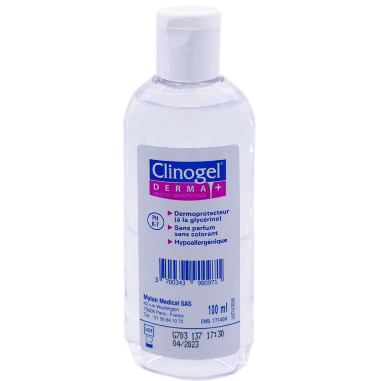Clinogel derma + de MEDA est un gel spécialement conçu pour se désinfecter les mains, en frictions simples, sans eau ni savon. Ce gel possède des propriétés bactéricides, fongicides, virucides, tuberculicides, et sa composition dermoprotectrice enrichie en glycérine, protège la peau des mains. Sans parfum, sans colorant, hypoallergénique.
