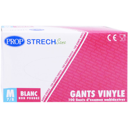 Les Gants Vinyle Blanc Non Poudrés discount de STRECH SANE PROP, santé et sécurité dans votre parapharmacie en ligne à prix discount, pour ces gants en vinyle non poudrés jetables à utiliser chez les personnes allergiques au latex, en milieu médical lors de risques mineurs. Taille M. Couleur Blanc