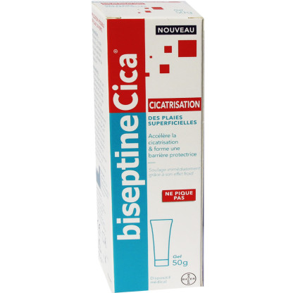 Biseptine Cica est un gel cicatrisant pour les plaies superficielles qui hydrate les plaies trop sèches et absorbe les plaies trop humides. Biseptine Cica accélère la cicatrisation des plaies superficielles. Le gel cicatrisant Biseptine Cica peut être utilisé pour tout type de plaie superficielle : égratignures, éraflures, coupures, coups de soleil, brûlures, gerçures, crevasses. Il peut même être appliqué sur plaie ouverte, afin d'accélérer sa cicatrisation. Ainsi, le gel BiseptineCica est l'allié idéal en cas de petites lésions du quotidien. Ne piquant pas, il n'est pas désagréable à appliquer. Ce gel a la particularité de pouvoir être appliqué sur une plaie ouverte.