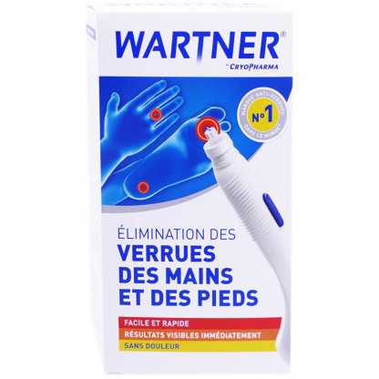 Le groupe Omega Pharma, acteur européen incontournable sur le marché des produits de santé familiale et de bien-être, développe de nombreuses marques reconnues pour la qualité, la sûreté et l’efficacité de leurs produits. Le traitement rapide des verrues Wartner Cryopharma élimine efficacement les verrues des mains et des pieds par la cryothérapie grâce à son gel à base d’acide trichloracétique, en gelant la verrue au cœur de la racine et en participant au renouvellement des cellules cutanées. Dès la première semaine, la verrue de détache laissant place à une peau saine. Pratique en format stylo, le Traitement rapide WARTNER permet une application précise et une utilisation simple.