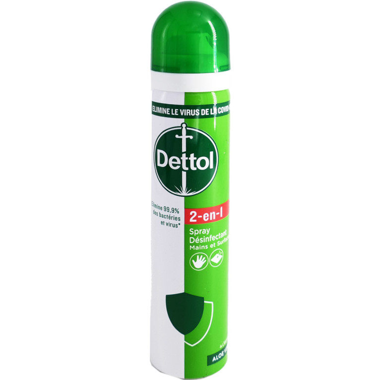 Ne laissez pas les germes envahir votre quotidien, optez pour le spray désinfectant Dettol 2 en 1 Mains & Surfaces. Commandez-le dès maintenant sur notre site de vente en ligne et profitez de son efficacité à prix discount.Contient 72 g d'éthanol pour 100g de produit, conformément à la réglementation locale (CAS N°64-17-5).