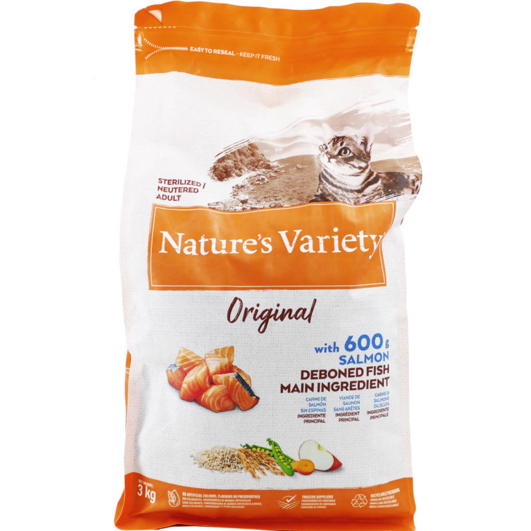 Original Saumon discount de NATURE’S VARIETY, la santé animale au naturel dans votre parapharmacie en ligne à prix discount, pour un aliment complet délicieux pour le plus grand plaisir des chats ! Pour chats adultes stérilisés