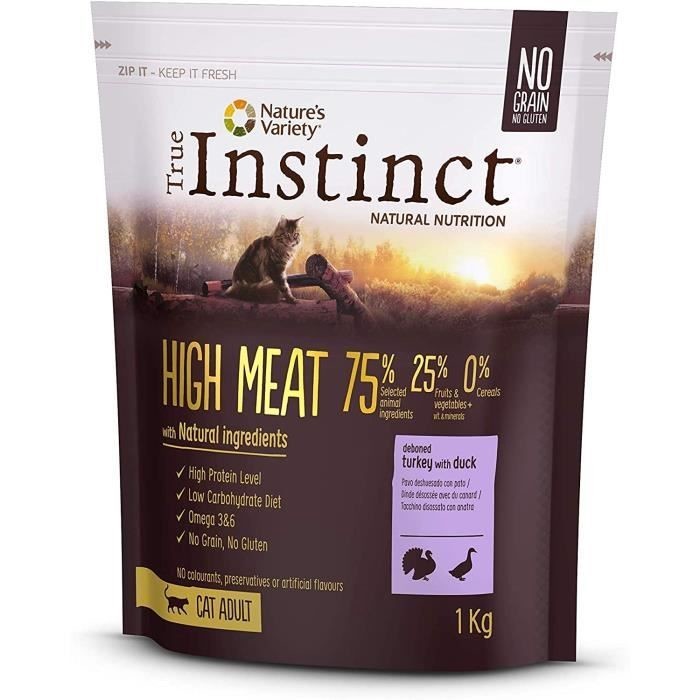 True Instinct High Meat Saumon et thon discount de NATURE’S VARIETY, la santé animale au naturel dans votre parapharmacie en ligne à prix discount, pour de délicieuses croquettes pour le plus grand plaisir des chats ! Pour chats adultes