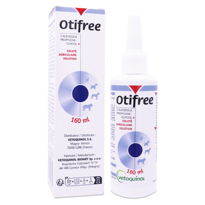 VETOQUINOL OTIFREE SOLUTÉ AURICULAIRE 160ML est une solution auriculaire à base de calendula et de propylène-glycol, en vente en ligne sur le site de votre parapharmacie à prix discount. Idéale pour le soin des oreilles, elle allie douceur et efficacité pour un confort optimal.