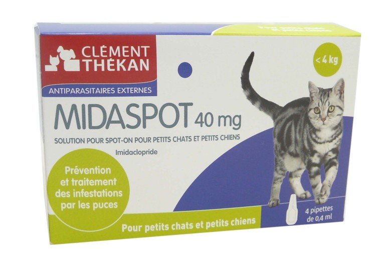 Midaspot petits chats et petits chiens de CLEMENT THEKAN, les pipettes pour lutter contre les puces chez les chats et les chiens de moins de 4KG.