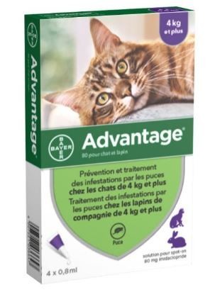 Advantage 80 chats de BAYER, les pipettes pour lutter contre les puces ches chats de + de 4kg.