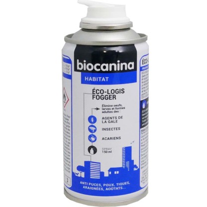 Le laboratoire BIOCANINA a conçu des produits de bien-être, antiparasitaires, hygiène, dermatologiques… spécialement formulés pour les chiens et les chats. ECO-LOGIS Fogger est un diffuseur générateur de brouillard monodose qui s’utilise en complément des traitements anti-puces et anti-tiques pour débarrasser l’environnement de toutes infestations d’insectes (puces, poux, punaises de lit), d’acariens (tiques, aoutats, agents de la gale) et d’araignées. Grâce à la perméthrine et au méthoprène, il élimine dès la première utilisation les parasites adultes et stoppe le développement des larves, dans toute la pièce infestée en les enveloppant dans une fine couche afin de les paralyser et les asphyxier. ECO-LOGIS Fogger ne tache pas. L’environnement est débarrassé de tout parasite en seulement 1 heure.