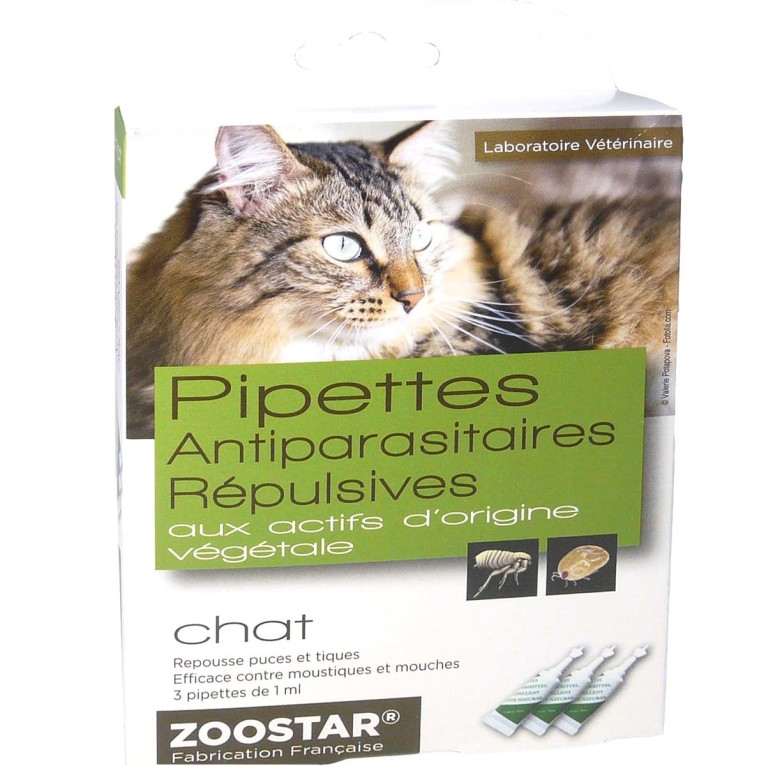 ZOOSTAR PIPETTES ANTI-PARASITAIRES REPULSIVES POUR CHAT 3x1ML