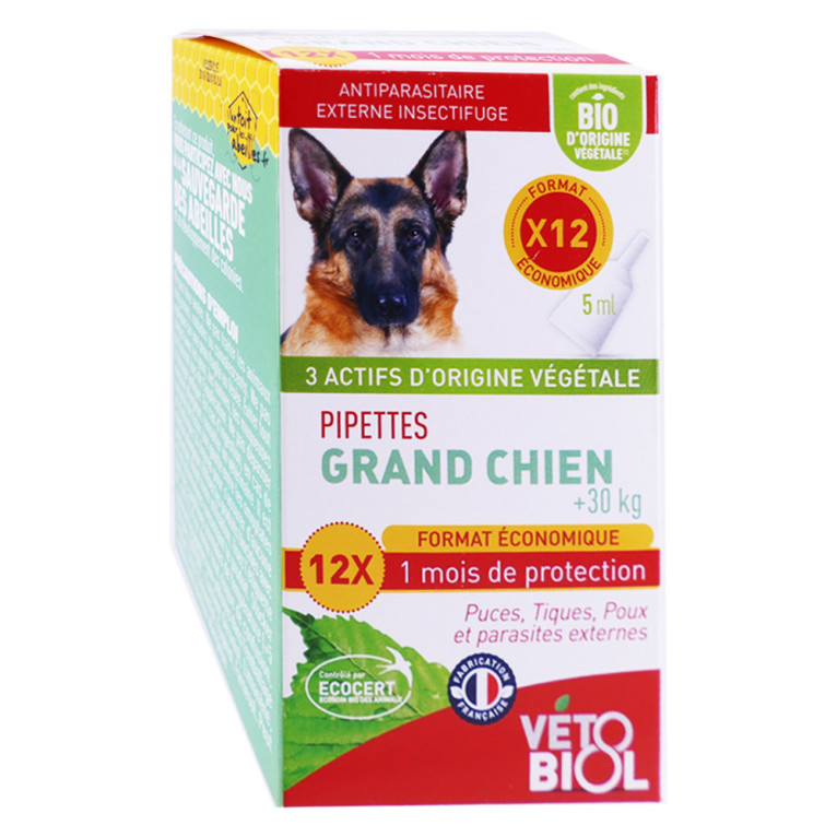 VETOBIOL BIO ANTIPARASITAIRE PIPETTES GRAND CHIEN 12X5ML