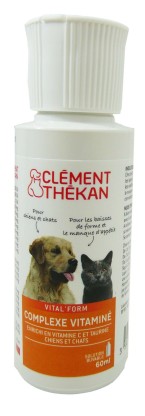Complexe vitamine de CLEMENT THEKAN, un complément alimentaire pour assurer le bon fonctionnement de l’organisme des animaux de compagnie (chiens, chats, oiseaux, hamsters, cobayes, lapin, furet), et leur redonner de la vitalité.