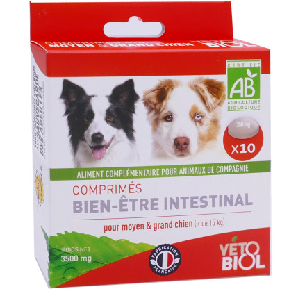 VETOBIOL BIEN-ETRE INTESTINAL 10 COMPRIMES MOYEN & GRAND CHIEN