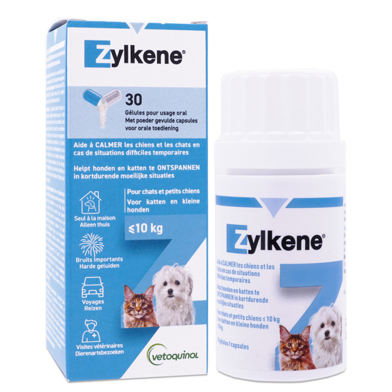 Développé par le laboratoire Vetoquinol, reconnu pour son expertise dans la santé animale, Zylkene se compose d'un extrait de protéine de lait, la caséine, connu pour ses propriétés apaisantes.