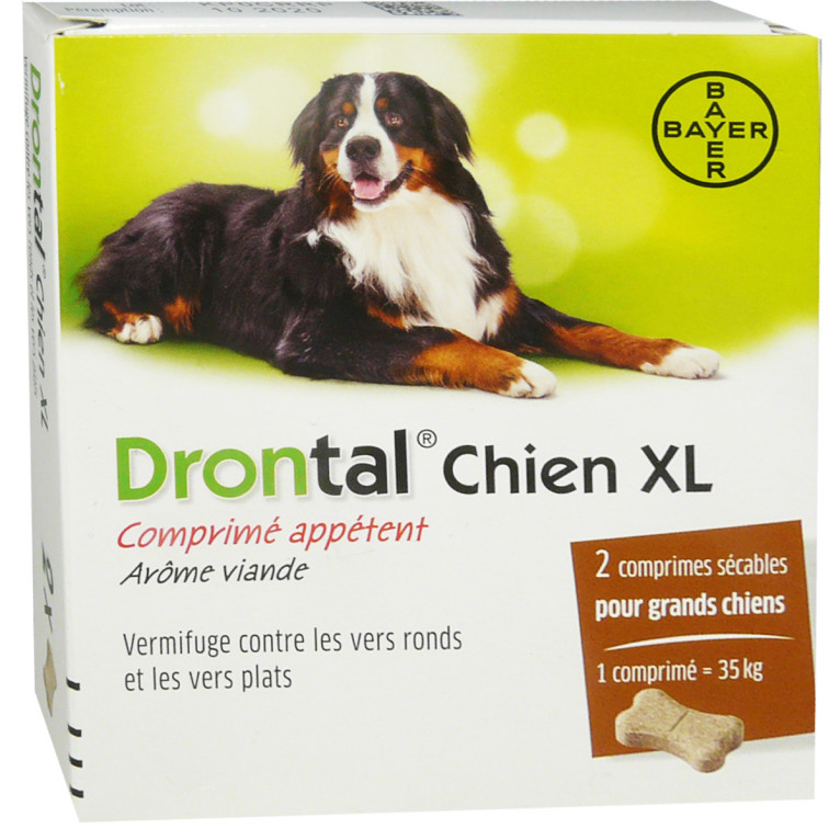 Drontal Chien XL de BAYER dans votre parapharmacie en ligne à prix discount, le vermifuge pour lutter contre l’infestation des vers plats et ronds pour les chiens à partir de 10kg, même pour les femelles gestantes (à partir de 5 semaines de gestation) et période de lactation. MEDICAMENT VETERINAIRE DELIVRE AVEC UNE ORDONNANCE DU VETERINAIRE