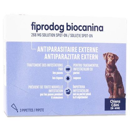 BIOCANINA FIPRODOG ANTIPARASITAIRE EXTERNE 3 PIPETTES est en vente en ligne sur le site de votre parapharmacie à prix discount, conçu pour protéger efficacement les grands chiens entre 20 et 40 kg.