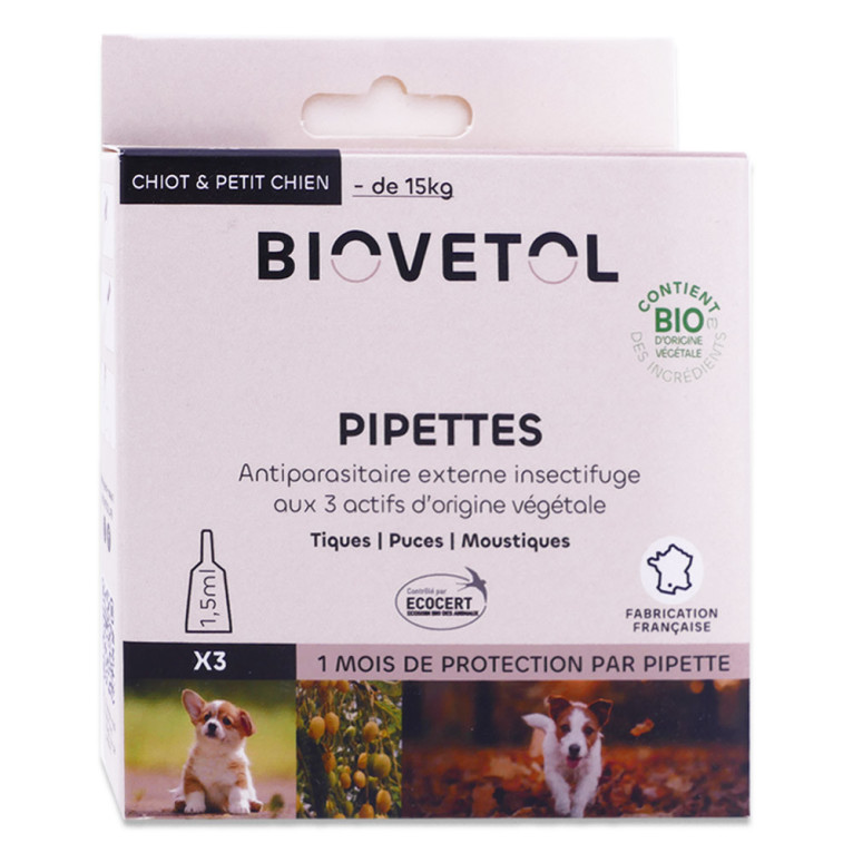 BIOVETOL CHIOT & PETIT CHIEN 3 PIPETTES ANTI PARASITAIRE