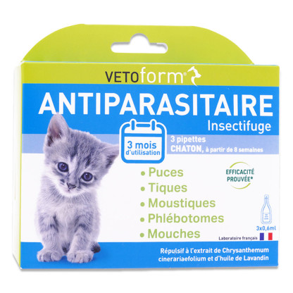 VETOFORM ANTIPARASITAIRE INSECTIFUGE CHATON 3x0.6ML
