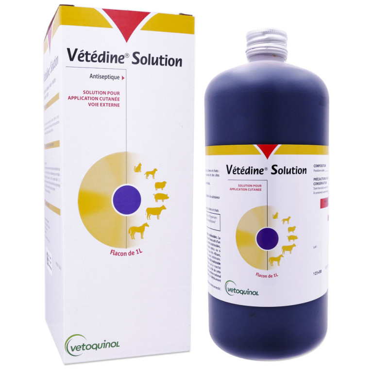 VETOQUINOL VÉTÉDINE SOLUTION ANTISEPTIQUE 1L est disponible en vente en ligne à prix discount sur Pharmashopdiscount.