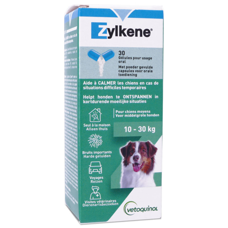 VETOQUINOL ZYLKENE CHIEN 10-30 KG 30 GÉLULES est disponible en vente en ligne à prix discount sur Pharmashopdiscount