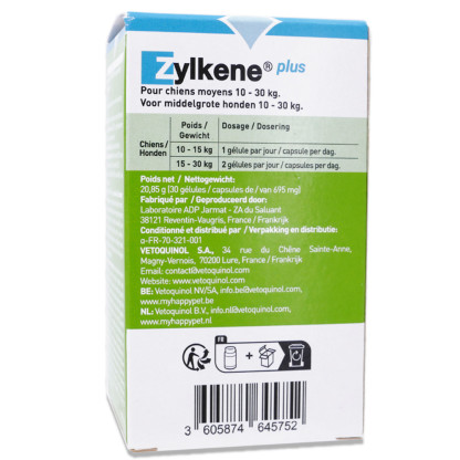 VETOQUINOL ZYLKENE PLUS 30 GELULES CHIENS 10-30KG