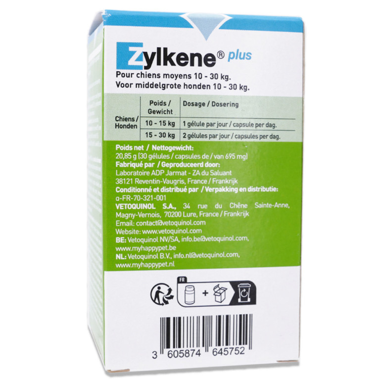 ZYLKENE PLUS 225MG CHIEN 10-30KG 30 GELULES est disponible en vente en ligne à prix discount sur Pharmashopdiscount.