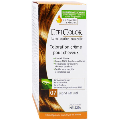Coloration Capillaire EFFICOLOR Permanente discount d'INELDEA, la coloration haute performance dans votre parapharmacie en ligne à prix discount, pour assurer couleur intense, brillance et protection longue durée, Blond Naturel 07.