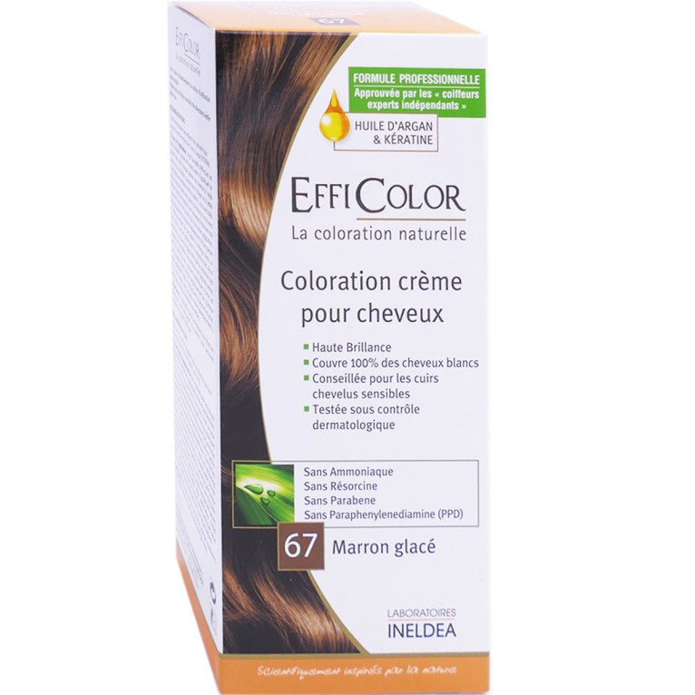 Coloration Capillaire EFFICOLOR Permanente discount d'INELDEA, la coloration haute performance dans votre parapharmacie en ligne à prix discount, pour assurer couleur intense, brillance et protection longue durée, Marron Glacé 67.