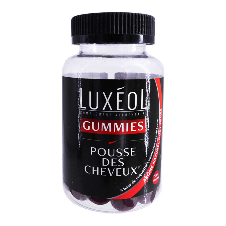 LUXEOL Gummies Pousse de cheveux, le complément alimentaire conditionné sous forme de gummies fruitées à base de plante, vitamines et minéraux, disponible dans votre parapharmacie en ligne à prix discount.