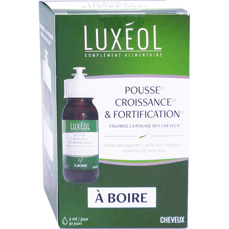 LUXEOL Cheveux, le complément alimentaire à boire en pipette disponible dans votre parapharmacie en ligne à prix discount.