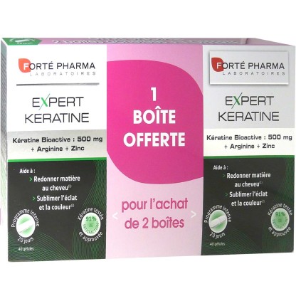 Depuis 1999, les Laboratoires FORTÉ PHARMA développent des compléments alimentaires efficaces et innovants, aux formules issues de la recherche en nutrition cellulaire, pour contribuer à renforcer les ressources vitales des utilisateurs. L’univers beauté de FORTÉ PHARMA propose des produits conçus pour améliorer la beauté de la peau, des ongles et des cheveux. EXPERT KERATINE de FORTÉ PHARMA est un complément alimentaire conditionné sous forme de gélules, spécialement formulé pour redonner matière à la fibre capillaire et sublimer la qualité du cheveu. La formule innovante de EXPERT KERATINE apporte 500mg de kératine bioactive associée à de l’arginine, du zinc et des vitamines B6/B8 pour renforcer la structure interne de la fibre capillaire et redonner de la matière aux cheveux, resserrer les écailles en surface et rétablir brillance et éclat à la chevelure.
