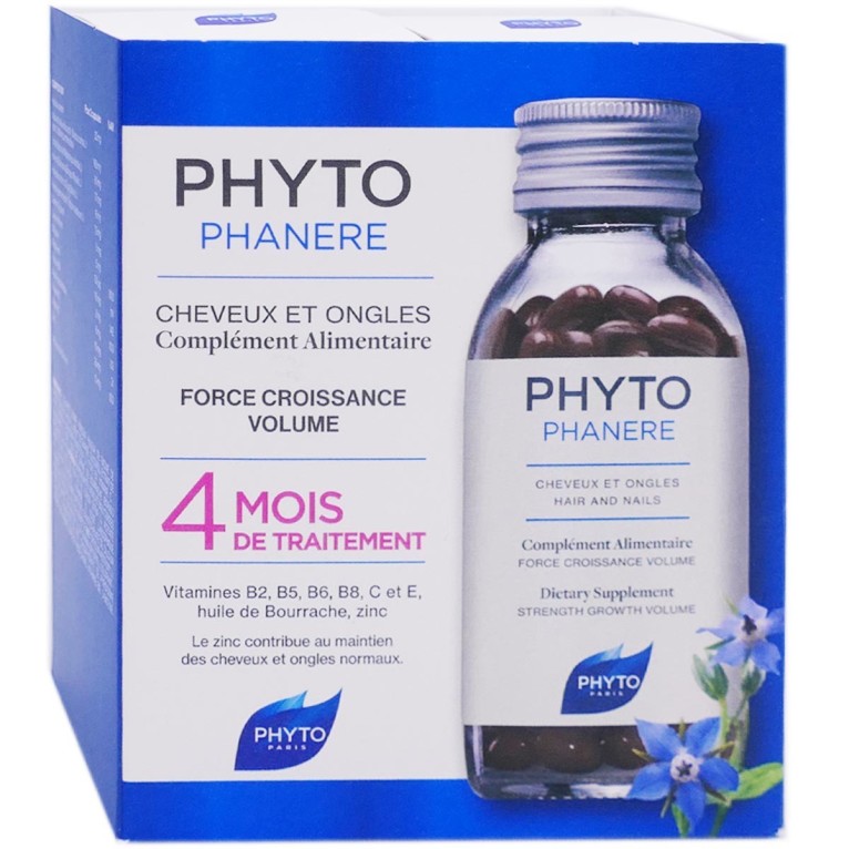 PHYTOPHANERE est un complément alimentaire sous forme de capsules composé de vitamines C et E ainsi que de vitamines du groupe B (B2, B5, B6, B8), d'huile de bourrache et de zinc. Dans cette formule le zinc participe au maintien de cheveux et d'ongles normaux et la vitamine B6 favorise la synthèse normale de la cystéine. Enfin la Biotine ou vitamine B8 contribue au maintien de cheveux normaux.