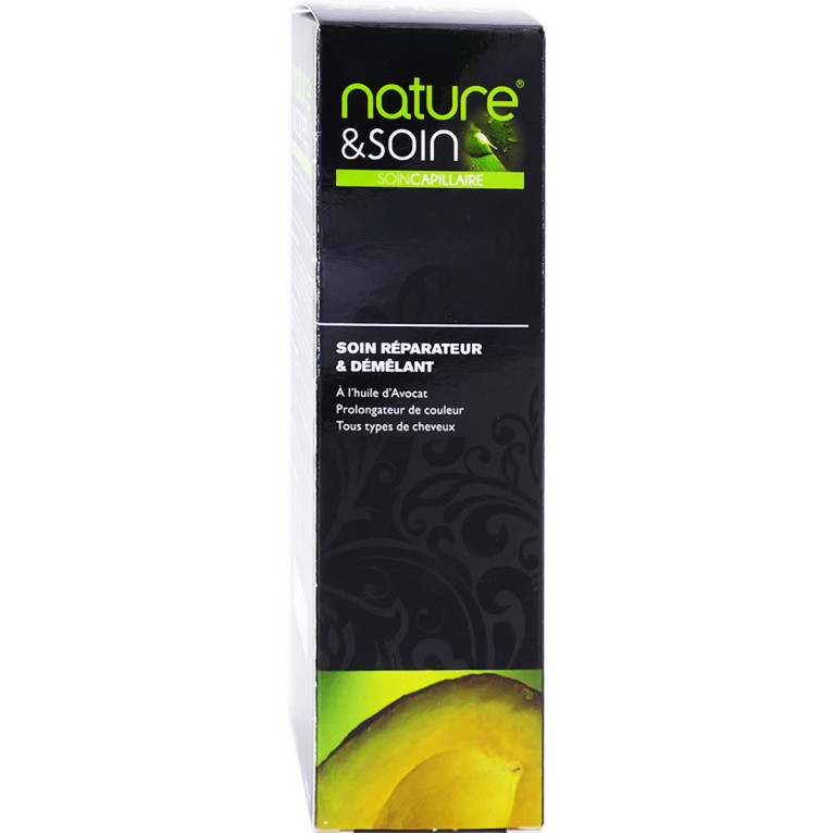 Soin Réparateur et Démêlant Nature & Soins, à la texture légère, est un soin capillaire spécialement conçu pour protéger les cheveux colorés et hydrater en profondeur la fibre capillaire. Sa formule contient des extraits d’avocat pour nourrir le cheveu dès la racine, révéler l’éclat naturel de la couleur, et leur redonner douceur et souplesse. La chevelure retrouve éclat et couleur intense, brillance, et vigueur. Elle est facile à coiffer.