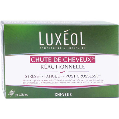 LUXEOL Chute de Cheveux Réactionnelle discount le complément alimentaire conditionné sous forme de gélules disponible dans votre parapharmacie en ligne à prix discount.