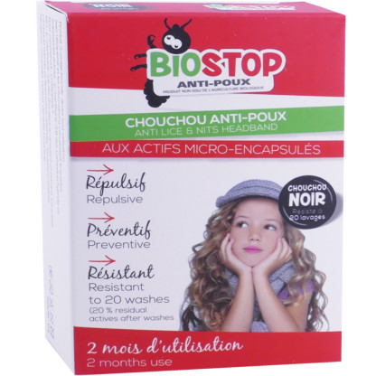 Les produits BIOSTOP sont destinés à prévenir, éliminer et repousser les infestations de poux et lentes, et les insectes par des actifs 100% naturels pour toute la famille. Le Chouchou Antipoux repousse les poux, et lutte contre leur multiplication grâce à des actifs 100% naturels micro encapsulés (extrait d’eucalyptus citronné, huile essentielle de lavandin super). Pendant tout le port du chouchou, tous les poux sont repoussés. Le chouchou est résistant jusqu’à 20 lavages.
