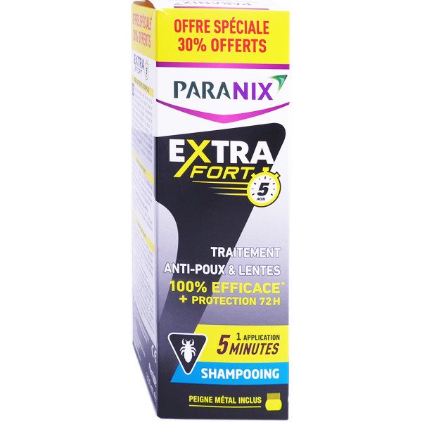 Le shampooing anti-poux et lentes Traitement PARANIX Extra Fort sans insecticide agit dès la première utilisation pour éliminer efficacement 100% des poux et lentes. Ce traitement étouffe et déshydrate les poux et les lentes qui ne peuvent pas développer de résistance. Non gras, ce shampooing contient également des agents démêlants très doux qui vont laver les cheveux et faciliter le décollement des lentes. Pour une efficacité optimale, compléter l’action de ce shampooing en retirant les poux et les lentes avec un peigne fin. Testée sous contrôle dermatologique