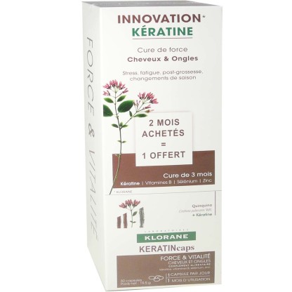 Innovation Kératine Cure de force de KLORANE discount, un complément alimentaire fortifiant dans votre parapharmacie à prix discount, pour redonner aux cheveux dévitalisés, fatigués et ternes, et aux ongles cassants force et beauté en 3 mois.