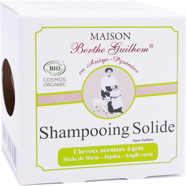 Shampooing Solide Bio discount BERTHE GUILHEM, le savoir-faire de tradition depuis 1956 dans votre parapharmacie en ligne discount, dans un savon au parfum envoutant pour l’hygiène quotidienne des cheveux. Idéal pour les cheveux normaux à gras.