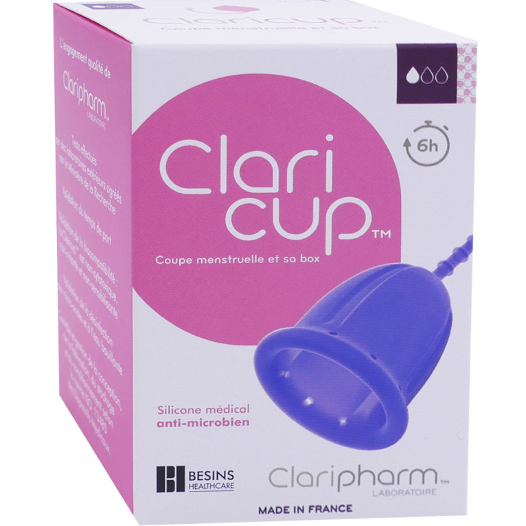 CLARICUP de Claripharm discount, 1 coupe menstruelle réutilisable confort dans votre parapharmacie en ligne à prix discount pour protéger lors des règles menstruelles aux flux légers à normaux.