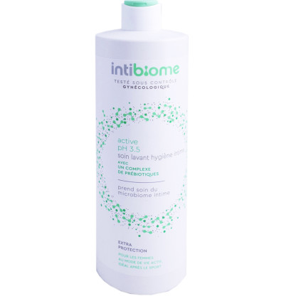 Intibiome Active Soin Lavant Hygiène Intime enrichie en agents lavants ultra-doux d’origine végétale et composé d’un complexe de prébiotiques assure un renforcement des défenses naturelles cutanées au quotidien. L'action prébiotique préserve le microbiote intime. Au pH 3.5, le soin lavant respecte toutes les peaux même les plus sensibles des femmes (idéal lors de mode de vie actif, après le sport ou la natation). Sans savon, sans agent lavant sulfaté.