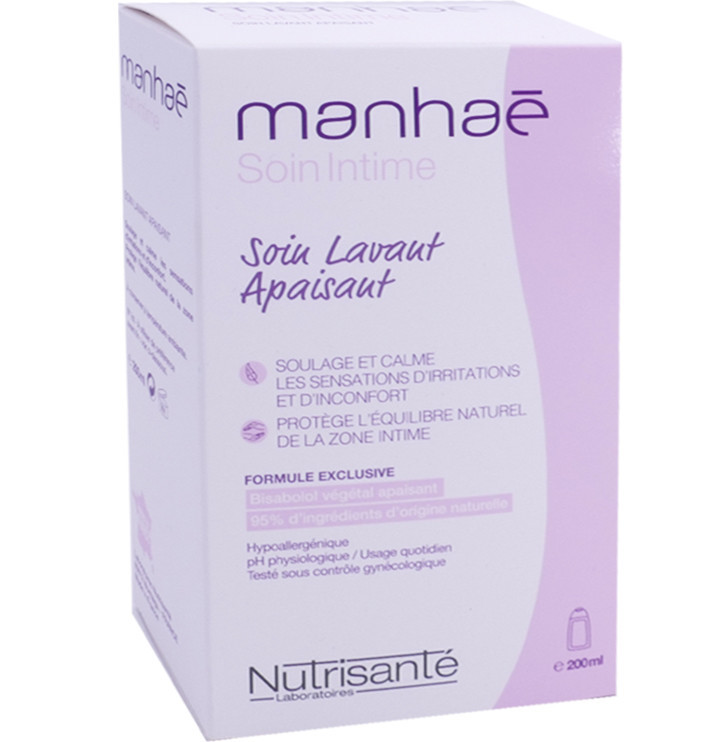 MANHAE Soin Intime Apaisant discount des Laboratoires NUTRISANTE, un soin au Bisabolol apaisant pour nettoyer en douceur la zone intime dans votre parapharmacie en ligne à prix discount.