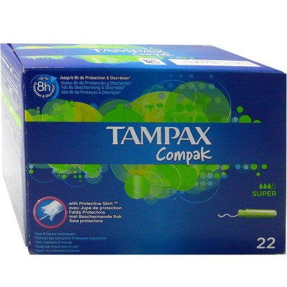 La marque TAMPAX 1ère marque de tampons, propose une large gamme de tampons répondant à tous les besoins hygiéniques en matière de taille, d’intensité de flux, avec ou sans applicateur… Dotés d’un voile protecteur absorbant, les tampons TAMPAX Compak Super s’insèrent tout en douceur et se mettent en place facilement, tout en retenant le liquide à l’intérieur du tampon pour une sécurité maximale. Il est doté d’une jupette anti-fuite à la base du tampon qui prévient les fuites pour une utilisation optimale. L’applicateur permet une insertion plus facile, et le cordonnet un retrait tout en douceur. Leur format compact rétractable permet une utilisation en toute discrétion.