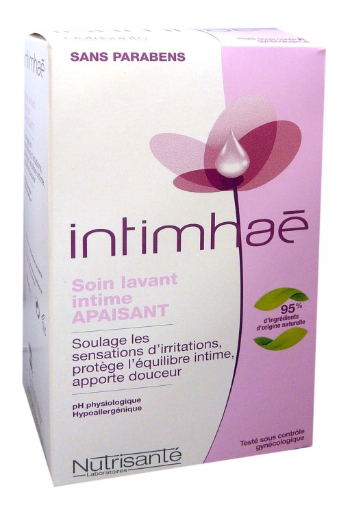 Depuis 1992, Les laboratoires NUTRISANTE proposent aux consommateurs en quête de bien-être des produits innovants, efficaces, naturels et sûrs pour l’organisme à travers des gammes complètes de soin, compléments nutritionnels, tisanes et infusions. Soin lavant apaisant INTIMHAE est un soin lavant très doux, qui nettoie tout en douceur, protège et rééquilibre la flore vaginale, et apaise des irritations et inconforts intimes grâce à sa richesse en extrait de bisabolol qui est un actif d’origine végétale, d’acide lactique et d’actifs hydratants et surgraissants. Son pH permet un nettoyage tout en douceur sans agresser les parties intimes fragiles.