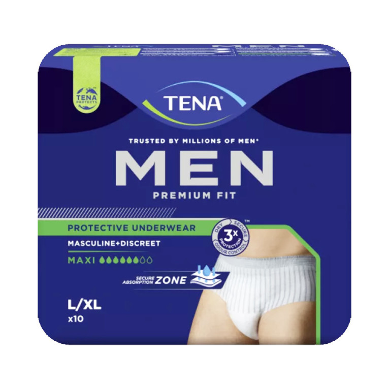 TENA MEN PREMIUM FIT MAXI TAILLE L/XL 10 CULOTTES en vente en ligne sur le site de votre parapharmacie à prix discount, est la solution idéale pour les hommes actifs à la recherche d'une protection discrète et efficace. Pour fuites urinaires très fortes