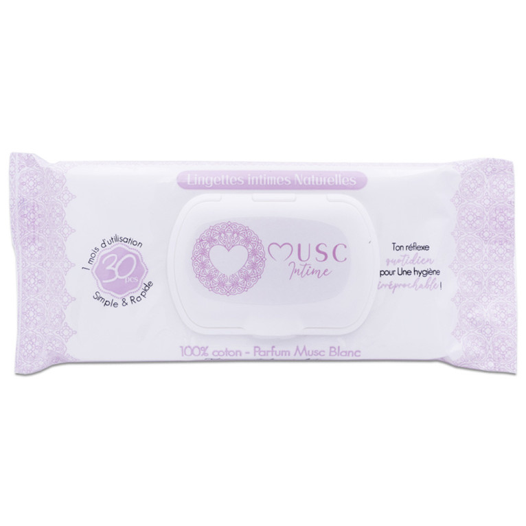 MUSC INTIME 30 LINGETTES INTIME NATURELLE MUSC BLANC, un soin délicat pour votre hygiène quotidienne, est en vente en ligne sur le site de votre parapharmacie à prix discount.