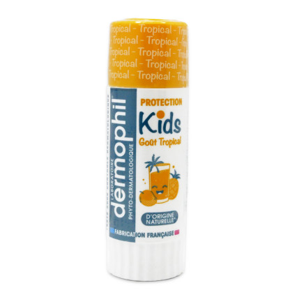 Stick lèvres DERMOKIDS de DERMOPHIL INDIEN discount, le stick aromatisé dans votre parapharmacie en ligne à prix discount, qui prend soin des lèvres très sèches et gercées même les plus sensibles des enfants. Parfum Tropical