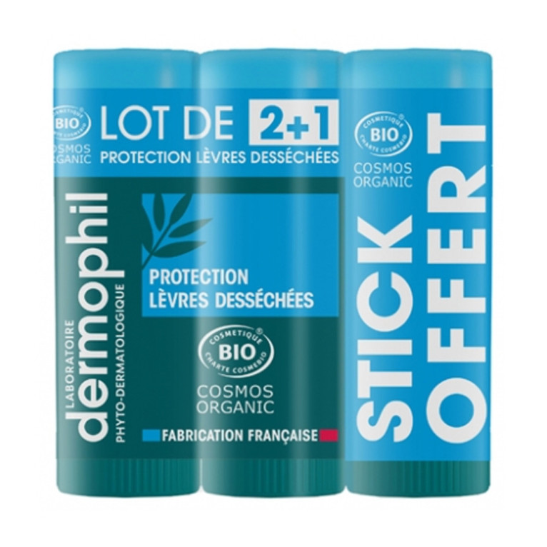 DERMOPHIL STICK PROTECTION LEVRES DESSECHEES BIO 2+1 OFFERT