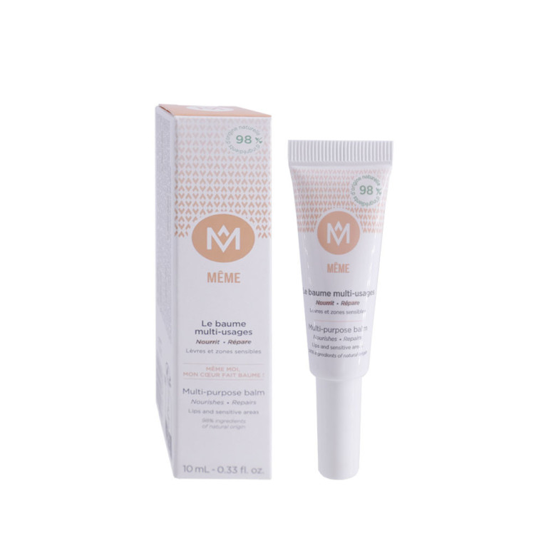 Le Baume Multi-usages discount de MêMe Cosmetics, douceur et bien-être naturel dans votre parapharmacie en ligne à prix discount, pour adoucir et apaiser les irritations, la sècheresse des lèvres et des peaux sensibles irritées, et tiraillées par les traitements (chimiothérapie, thérapies ciblées). Lèvres et Zones sensibles du Corps et du Visage (ailes du nez, coudes,…).