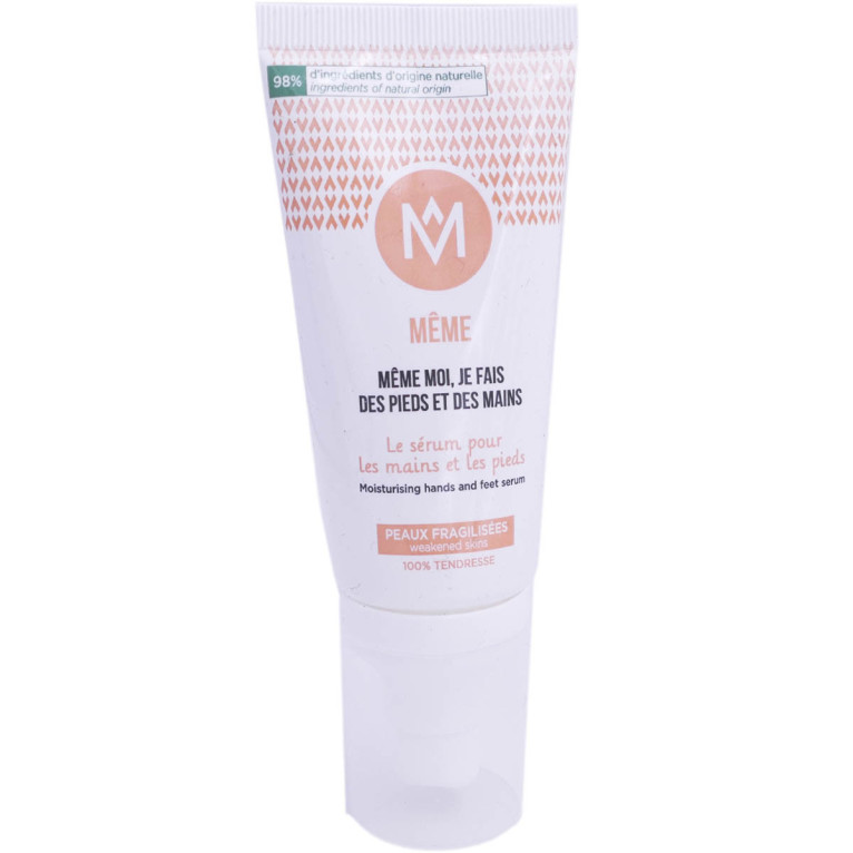 Le Sérum « Même moi, je fais des pieds et des mains » discount de MêMe Cosmetics, douceur et bien-être naturel dans votre parapharmacie en ligne à prix discount, pour adoucir et apaiser la peau très sèche, abîmée, fragilisée et tiraillée par les traitements (chimiothérapie, thérapies ciblées). Mains et Pieds