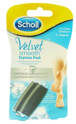 Les recharges express Pedi exfoliant Velvet Smooth de SCHOLL, 2 recharges adaptées au petit appareil Velvet Smooth de SCHOLL, pratique et facile d’utilisation qui redonne aux pieds souffrants de callosités une grande douceur en quelques minutes.